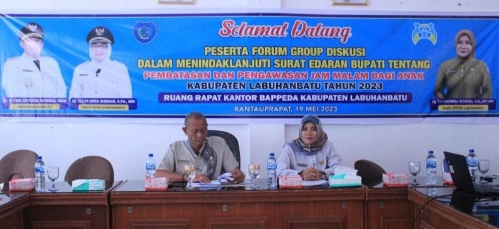 Labuhanbatu, POL | Mewakili Bupati Labuhanbatu, Asisten I Pemerintahan Kabupaten Labuhanbatu H. Sarimpunan Ritonga, M.Pd., membuka dan memimpin Forum Group Discussion (FGD) dalam menindaklanjuti Surat Edaran Bupati Nomor 300/152/DPPA/SE/2023 tentang Pembatasan dan Pengawasan Jam Malam Bagi Anak di Ruang Rapat Kantor Bappeda Labuhanbatu, Jumat (19/5/2023).
