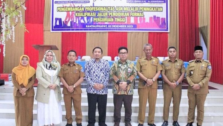 Labuhanbatu, POL | Asisten Pemerintahan dan Kesra Sekretariat daerah kabupaten (Setdakab) Labuhanbatu H. Sarimpunan Ritonga, M.Pd membuka kegiatan sosialisasi Pengembangan Profesionalitas ASN melalui peningkatan kualifikasi jalur Pendidikan Formal Perguruan Tinggi.