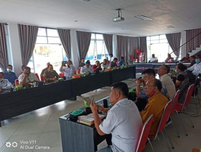 Samosir, POL | Pimpinan DPRD Samosir melalui Kabag Rapat dan Risalah Setwan, Sarimpol Simanihuruk bersama Kepala BPKAD Samosir, Jandri Sitanggang menerima kunjungan Panitia Kerja (Panja) DPRD Simalungun, Jumat (07/08/2020), di ruang rapat dewan.