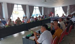 Samosir, POL | Pimpinan DPRD Samosir melalui Kabag Rapat dan Risalah Setwan, Sarimpol Simanihuruk bersama Kepala BPKAD Samosir, Jandri Sitanggang menerima kunjungan Panitia Kerja (Panja) DPRD Simalungun, Jumat (07/08/2020), di ruang rapat dewan.