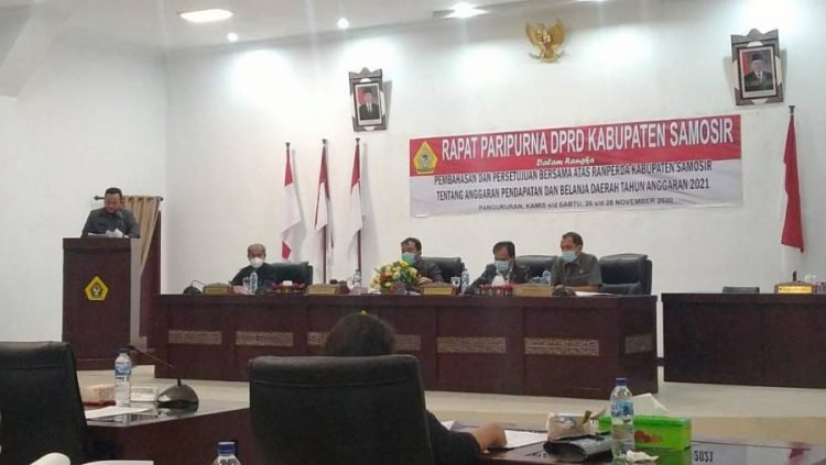Samosir, POL | Setelah beberapa waktu lalu nota pengantar bupati, DPRD Kabupaten Samosir kembali menggelar rapat paripurna dalam rangka pembahasan dan persetujuan bersama atas ranperda Kabupaten Samosir tentang Anggaran Pendapatan dan Belanja Daerah (RAPBD) tahun anggaran 2021, Kamis (26/11/2020).