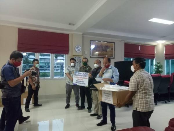 Dan hari itu juga Bupati Nikson Nababan didampingi Kepala Dinas Kesehatan Alexander Gultom SKM, MKM  mendistribusikan berupa APD yang diterima sumbangan para Donatur kepada Tim Covid-19 RSUD Tarutung .