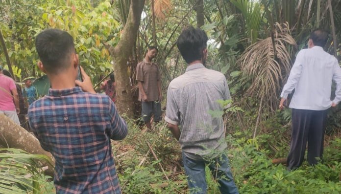 Sesampainya di belakang rumah, Marsinta Uli terkejut melihat korban sudah tergantung di pohon rambutan dengan leher terikat kabel tembaga yang panjangnya berkisar 4 meter.