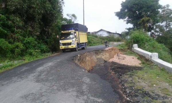 “Tetapi jauh sebelumnya lokasi itu sudah terlihat turun dan retak. Untuk itu kita menghimbau kepada seluruh pengguna jalan khususnya pengendara roda 4 ke atas agar berhati hati,” terangnya.