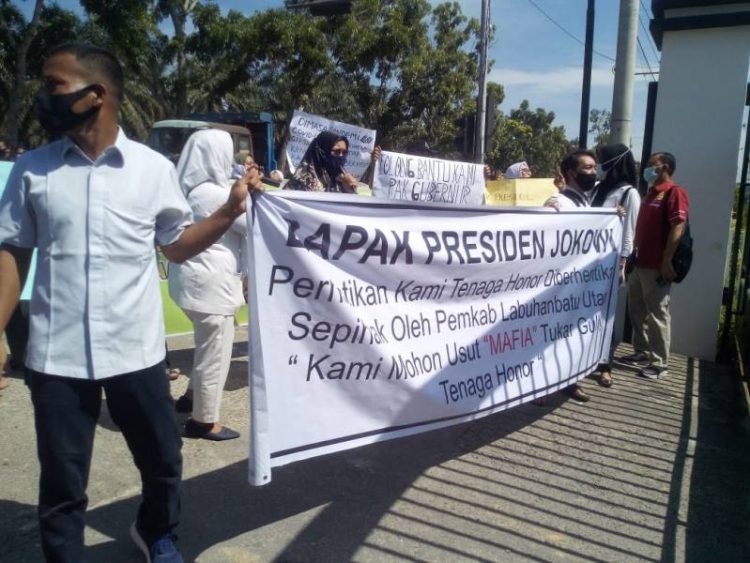 Informasi dihimpun dari keterangan para pelaku aksi eks Honorer di Pemakab Labura yang melakukan aksi demontrasi ini, sejak Bupati Labuhanbatu Utara periode 2020-2025 dilantik oleh Gubernur Sumatera Utara Edy Rahmayadi di Aula Kantor Gubernur Martabe di Medan 26/2/2021puluhan Tenaga Kerja Sukarela (Honorer) di bulan kedepannya mereka mendapat ketidakadilan melalui pemecatan.