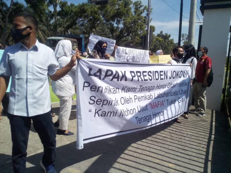 Informasi dihimpun dari keterangan para pelaku aksi eks Honorer di Pemakab Labura yang melakukan aksi demontrasi ini, sejak Bupati Labuhanbatu Utara periode 2020-2025 dilantik oleh Gubernur Sumatera Utara Edy Rahmayadi di Aula Kantor Gubernur Martabe di Medan 26/2/2021puluhan Tenaga Kerja Sukarela (Honorer) di bulan kedepannya mereka mendapat ketidakadilan melalui pemecatan.