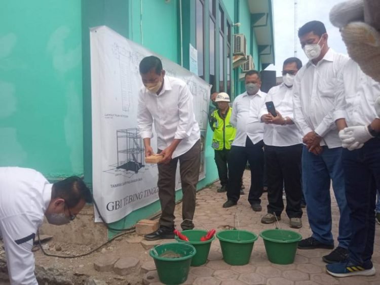 Tebing Tinggi, POL | Penantian selama 20 tahun para jemaat akhirnya berujung dengan dilakukannya peletakan batu pertama pembangunan Gereja Bethel Indonesia (GBI) House of Mercy Jemaat Tebing Tinggi Jalan Sutoyo, Kamis ((24/3/2022), yang diproyeksi  menelan biaya Rp3 miliar.