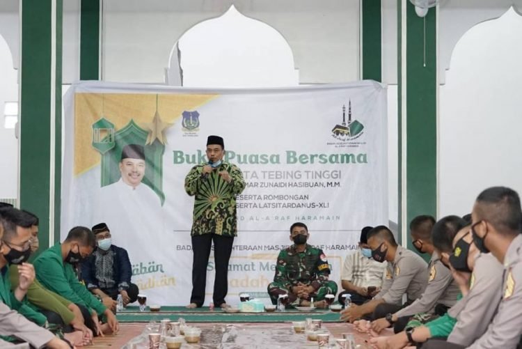 Tebing Tinggi, POL | Dalam rangka integrasi dan silaturahmi dengan masyarakat, Wali Kota Tebing Tinggi Ir. H. Zunaidi Hasibuan, M.M dengan Peserta Latsitardanus berbuka puasa bersama di Mesjid Al-A’ Raf Haramain Jalan Gunung Arjuna Kelurahan Mekar Sentosa Kecamatan Rambutan Kota Tebing Tinggi, Sabtu (17/04/2021).