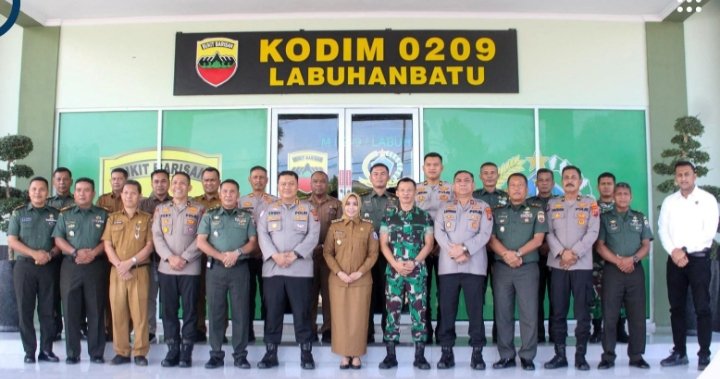 Labuhanbatu POL | Bupati Labuhanbatu dr. Hj. Maya Hasmita Sp.OG. MKM Bersama Kapolres Labuhanbatu AKBP. Choky Sentosa Meliala S.I.K. SH. MH, melakukan kunjungan silaturahmi ke Kodim 0209/LB, di Jalan Pramuka, Kelurahan Padang Matinggi, Kecamatan Rantau Utara. Senin (21/4/2025).
