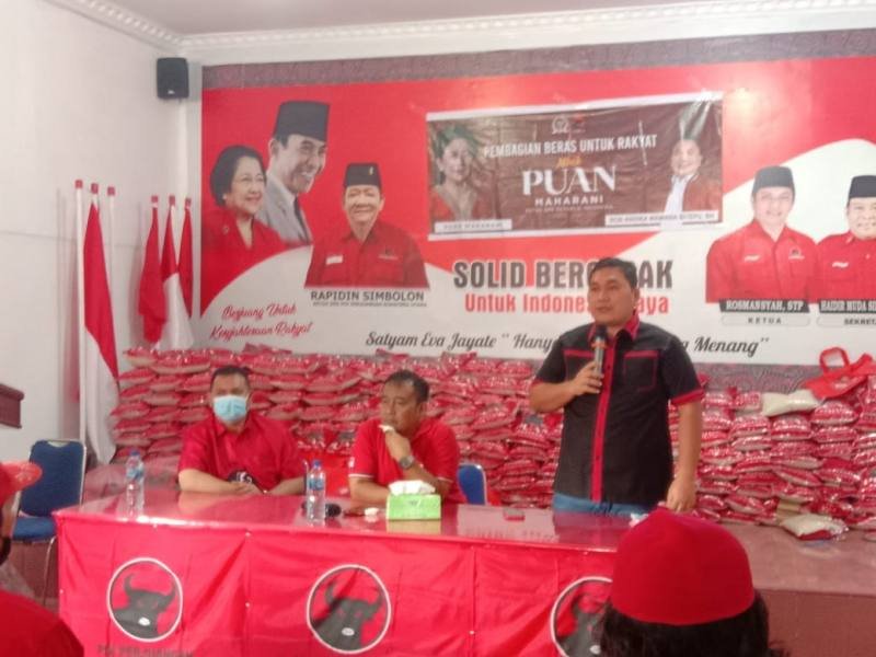 Kisaran, POL | Bob Andika Mamana Sitepu SH anggota DPR – RI dari Fraksi PDI Perjuangan menyalurkan bantuan paket sembako berupa beras dari Ketua DPR – RI Dr (HC) Puan Maharani.
