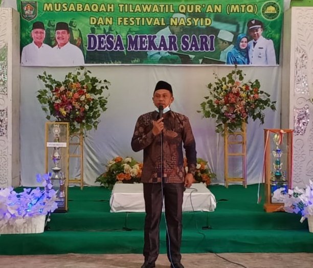 Asahan, POL | Kepala Desa Mekar Sari, Eka Wahyudi SH membuka secara resmi Musabaqah Tilawatil Qur’an (MTQ) dan Festival Nasyid (FN) Tingkat Desa Mekar Sari, Kecamatan Pulau Rakyat, Kabupaten Asahan, Kamis (21/1/2021).