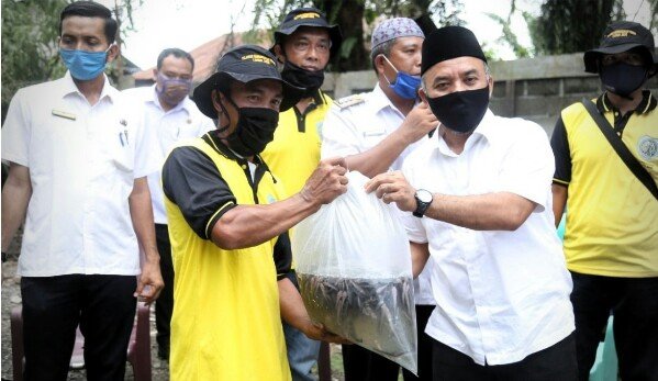 Rantauprapat, POL l Bupati Labuhanbatu H Andi Suhaimi Dalimunthe motivasi para pemuda, yang tergabung dalam ikatan kelompok tani Dusun IV Desa Sidorukun Kecamatan Pangkatan, melalui budidaya ikan lele, Rabu (29/4/2020).