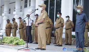 Asahan, POL ! Bupati Asahan H. Surya Bsc memimpin Apel Gabungan di Pemerintah Kabupaten Asahan diikuti oleh Sekretaris Daerah, para Asisten, OPD dan Pejabat Struktural Eselon III dan IV dari seluruh Organisasi Perangkat Daerah (OPD),di halaman Kantor Bupati Asahan, Senin (01/02/2021).