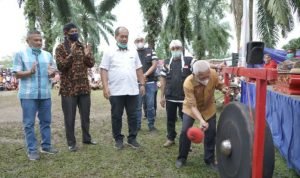 Sebagai tanda dimulainya kegiatan Gebyar Seni Budaya Reog Gembong Buwono Bupati Asahan bersama Wakil Bupati Terpilih melakukan pemukulan gong.