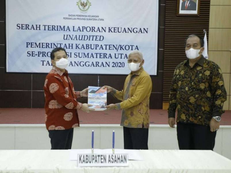 Kisaran, POL | Dalam rangka mempertahankan opini Wajar Tanpa Pengecualian (WTP), Bupati Asahan H. Surya Bsc menyerahkan Laporan Keuangan Pemerintah Daerah (LKPD) Pemerintah Kabupaten Asahan Tahun 2020 kepada BPK RI perwakilan Sumatera Utara, Selasa (23/03/2021) kemarin.