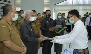 Asahan, POL | Sebanyak 106 orang CPNS di Lingkungan Pemerintah Kabupaten (Pemkab) Asahan Formasi Tahun 2019 menerima Surat Keputusan Bupati Asahan tentang Pengangkatan CPNS di Lingkungan Pemkab Asahan Formasi Tahun 2021 yang diserahkan langsung oleh Bupati Asahan di aula Melati Kantor Bupati Asahan, Selasa (12/01/2021).