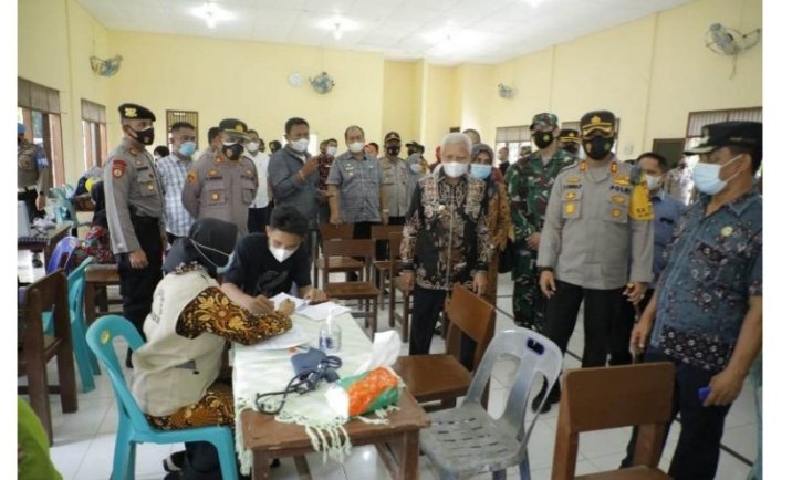 Kisaran, POL | Bupati Asahan bersama dengan Wakil Bupati dan Kapolres melakukan peninjauan pelaksanaan vaksinasi tahap II di lingkungan perusahaan PT. Perkebunan Nusantara III Kebun Bandar Selamat, di Desa Perkebunan Bandar Selamat, Kecamatan Aek Songsongan, Jumat kemarin.
