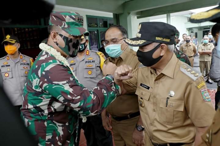 Asahan, POL | Bupati Asahan H. Surya Bsc turut menyambut kedatangan Danrem 022/PT di Makodim 0208 Asahan, Senin (13/7/2020).