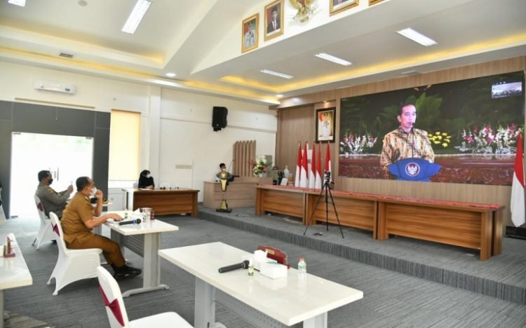 Batubara, POL | Bupati Batu Bara Ir.H. Zahir MAP bersama Sekretaris Daerah H. Sakti Alam Siregar SH dan sejumlah Kepala OPD mengikuti Rapat Koordinasi secara virtual dengan Gubernur Sumatera Utara Edy Rahmayadi bertempat di aula rumah dinas Bupati setempat di Komplek Tanjung Gading Kuala Tanjung, Selasa (18/0/2021).