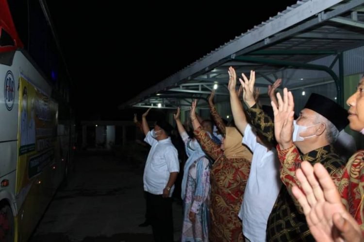 Seluruh peserta MTQ dan Official Kabupaten Labuhanbatu diberangkatkan dari kediaman Bupati Labuhanbatu di Kelurahan Padang Matinggi, Kecamatan Rantau Utara, Jumat (18/03/2022) malam.