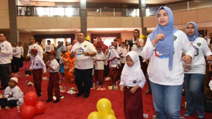 Tapsel, POL | Bupati Tapanuli Selatan (Tapsel) H Dolly Pasaribu, SPt, MM dan Ketua Tim Penggerak Pemberdayaan dan Kesejahteraan Keluarga (TP PKK) Tapsel Rosalina Dolly Pasaribu, mengajak anak-anak untuk memiliki sifat yang positif dan tetap memiliki daya imajinasi yang tinggi sesuai kodratnya.