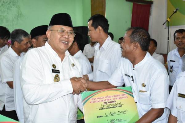 Sergai, POL | Bupati Sergai H Ir Soekirman dan Wakil Bupati H Darma Wijaya memberikan Penyerahan Dana PAD Kegiatan BUMDes Bersama dan Penyerahan Dana Rumah Tangga Miskin (RTM) serta Kegiatan Eks-PNPM-MP Kecamatan se Kabupeten Sergai, bertempat di Wisma Prakasa pabatu ,Desa Kedai Damar Kecamatan Tebing -tinggi Kabupaten Serdang Bedagai, Rabu (29/1/2020).
