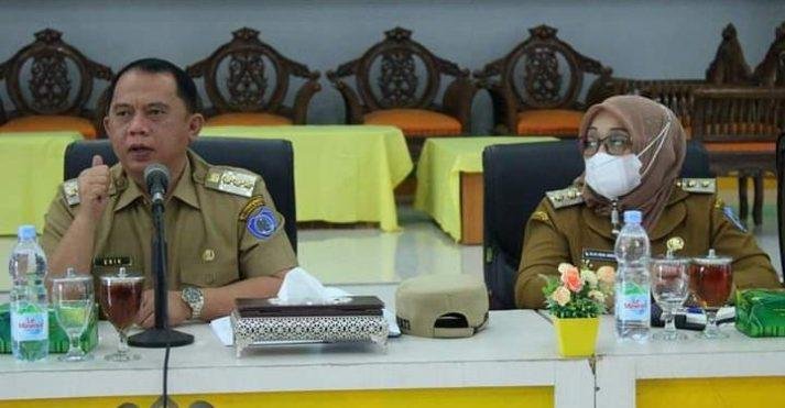 Labuhanbatu, Pol | Bupati Labuhanbatu dr. H. Erik Adtrada Ritonga M.KM didampingi Wakil Bupati Hj. Ellya Rosa Siregar SPd, M.M membuka acara silaturahmi dengan Pimpinan Perusahaan Perkebunan, Pabrik Kelapa Sawit, Pabrik Pengolahan Karet se-Labuhanbatu di Ruang Data dan Karya Kantor Bupati, Rantau Selatan, Senin (18/10/2021).