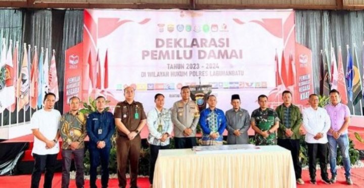 Acara dirangkai dengan penandatanganan Deklarasi Pemilu Damai oleh Bupati Labuhanbatu dr. H. Erik Adtrada Ritonga, MKM., Kapolres Labuhanbatu AKBP James H Hutajulu, S.IK, M.IK, SH, MH, Dandim 0209/LB Letkol Inf M Faizal Rangkuti, S.IP, M.IP dan seluruh undangan.