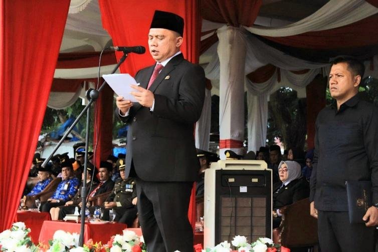 Bupati Labuhanbatu saat membacakan pidato tertulis menteri sosial (Mensos) Tri Rismaharini, menyampaikan bahwa perjuangan para pahlawan merupakan jejak kehidupan yang harus tetap dikenang perjuangannya.