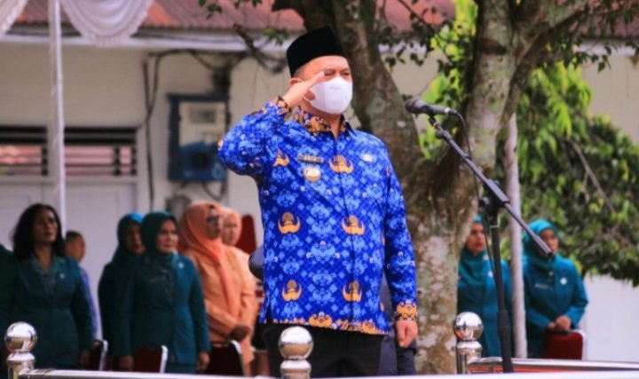 Labuhanbatu, POL | Bupati Labuhanbatu dr. H. Erik Adtrada Ritonga, MKM pembina upacara puncak peringatan HUT KORPRI di kabupaten Labuhanbatu yang digelar di lapangan Badan Kepegawaian Pendidikan dan Pelatihan (BKPP) Kabupaten Labuhanbatu, Senin (05/12/2022).