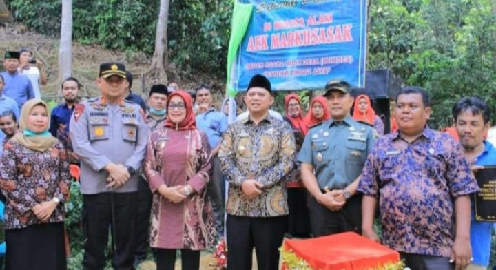 Labuhanbatu, POL | Bupati Labuhanbatu dr. H. Erik Adtrada Ritonga, MKM didampingi Wakil Bupati Hj. Ellya Rosa Siregar, S.Pd, MM, meresmikan BUMDes Bandar Tinggi Jaya Wisata Alam Aek Markusasak di Dusun Sihare-hare, Desa Bandar Tinggi, Kecamatan Bilah Hulu, Kabupaten Labuhanbatu, Sumatera Utara, Kamis (09/06/2022).