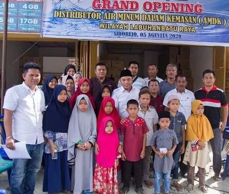 Labuhanbatu. POL | Bupati Labuhanbatu H Andi Suhaimi Dalimunthe ST,MT meresmikan keberadaan Distributor Air Minum dalam Kemasan (AMDK) merk Liga untuk Labuhanbatu Raya di Kelurahan Sidorejo Kecamatan Rantau Selatan, Rabu (5/8/2020).