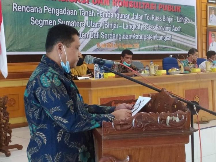 Hal ini, disampaikan Plt. Asisten I Drs.Basrah Pardomuan pada kegiatan sosialisasi publik rencana pengadaan tanah pembangunan jalan tol Binjai -Langsa, di Ruang Pola Kantor Bupati Langkat, Stabat, Kamis (16/7/2020).