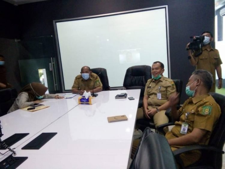 Stabat, POL | Bupati Langkat Terbit Rencana PA melalui Wakil Bupati Langkat H. Syah Afandin mengikuti Video Conference (Vidcon) dari Ruang LCC Kantor Bupati Langkat, Stabat, Selasa (30/6/2020).