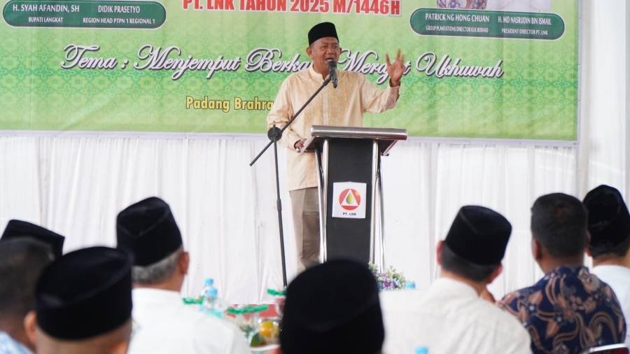 Selesai, POL | Dalam rangka semangat mempererat silaturahmi dan kolaborasi di bulan suci Ramadan, Bupati Langkat H. Syah Afandin, SH, atau yang akrab disapa bang ondim, menggelar buka puasa bersama PT Langkat Nusantara Kepong (LNK) di Masjid Nurul Hidayah, Emplasmen Kebun Padang Brahrang, Kecamatan Selesai, Jumat (21/3/2025).