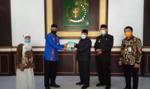 Piagam penghargaan diserahkan oleh Kepala BPS Provsu Syech Suhaimi kepada Bupati, pada kunjungan BPS Provsu di Rumah Dinas Bupati Langkat, Stabat, Kamis (30/7/2020).