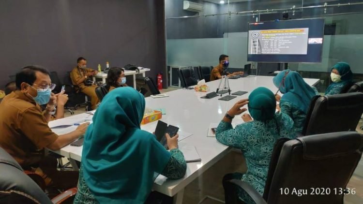 Sekda pada Vidcon didampingi, kepala BPBD Irwan Syahri, Kadis PMD Sutrisuanto, kepala BPKAD M.Iskandar, Plt Kadis Kesehatan Dr.Juliana, ketua DWP Ny. Endang Indra Salahuddin, Sektretaris TP PKK Ny.Sura Ukur, ketua Pokja I Ny.Jumiani Syahmadi, ketua Pokja II Wati Saiful Abdi.