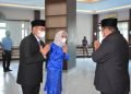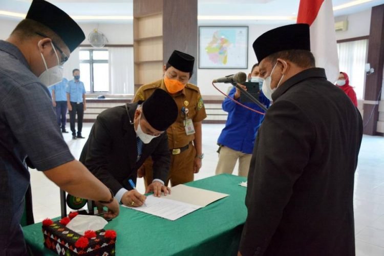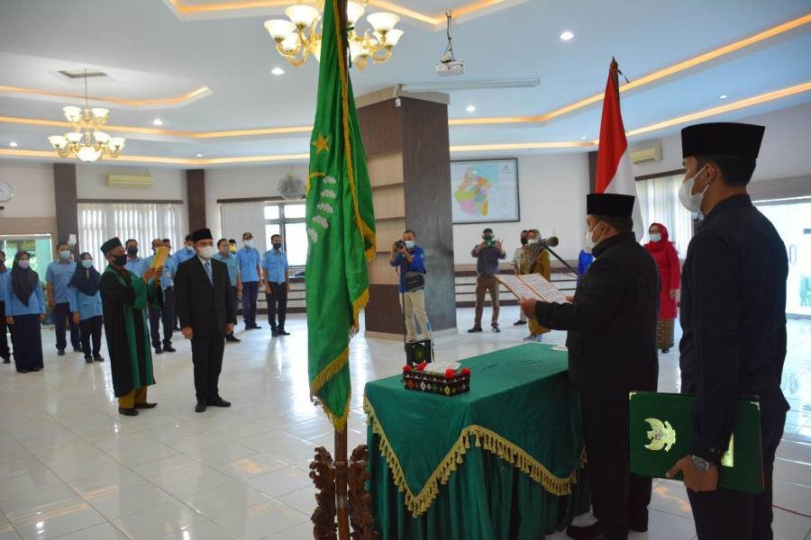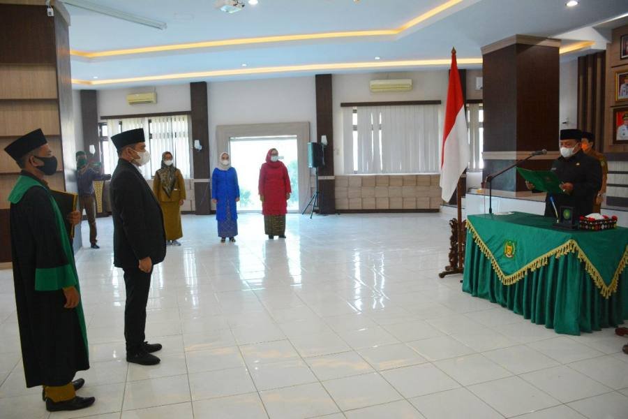 Pelantikan ditandai, pengambilan sumpah jabatan dan penandatanganan berita acara pelantikan, oleh Bupati.