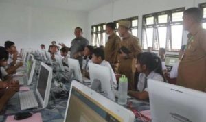 Samosir, POL | Bupati Samosir Rapidin Simbolon beserta Kepala Cabang Dinas Pendidikan Provsu, Alfred H. Silalahi, M.Si Kadis Pendidikan Samosir, Rikardo Hutajulu, Kepala Sekolah SMA 1 Pangururan, Bilpon Simbolon serta Kabag Humas dan Kerjasama, P. Hartopo Manik melakukan peninjauan pelaksanaan Ujian Nasional Berbasis Komputer (UNBK) sekaligus memberikan motivasi terhadap siswa/i SMA 1 Pangururan, Senin (01/04).