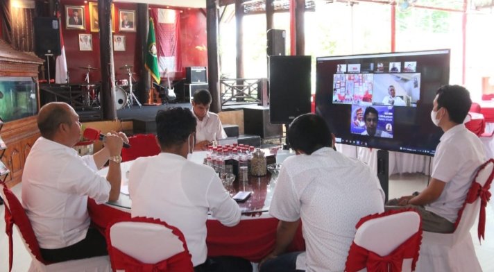 Tarutung, POL | Bupati Tapanuli Utara Drs. Nikson Nababan ,MSi melakukan diskusi bersama bertajuk “Dinamika Membangun Tapanuli Utara”. Diskusi itu diadakan oleh Persatuan Wartawan Nasrani (Pewarna) melalui zoom meeting di Sopo Rakyat Rumah Dinas Bupati, Tarutung, Rabu (15/09/2021).