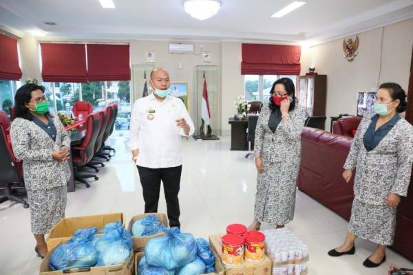 Sumbangan tersebut diserahkan di ruang kerja Bupati di Tarutung, Rabu (22/04/2020).