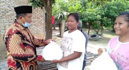 Labuhanbatu, POL | Bupati Labuhanbatu melalu Camat Rantau Selatan serahkan bantuan sembako kepada keluarga Sukiem dan Suminem yang kebutuhannya sangat sulit karena tidak memproduksi batu bata lagi sejak wabah Covid-19 melanda daerah ini, Minggu (16/5/2020).