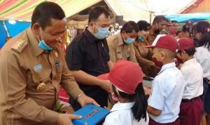 Samosirr, POL | Bupati Samosir Drs. Rapidin Simbolon, MM bersama Ketua dan Wakil Ketua DPRD Samosir melaunching bantuan bus sekolah untuk anak sekolah dari Desa Janji Maria dan Tamba Dolok di Desa Janji Maria Kecamatan Sitio tio, senin (24/08/2020).