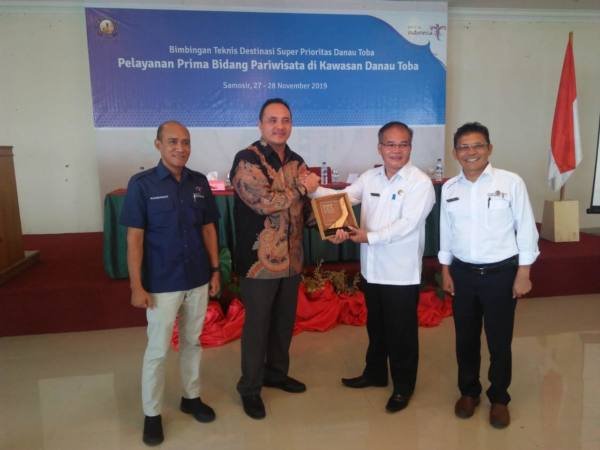 Samosir, POL | Kementerian Pariwisata melalui Politeknik Pariwisata (Poltekpar) Palembang yang bekerja sama dengan Dinas Pariwisata Samosir melaksanakan Bimbingan Teknis (Bimtek) Destinasi super prioritas Danau Toba, Rabu (27/11/2019).