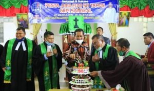 Samosir, POL | Bupati Samosir Drs. Rapidin Simbolon, MM hadiri pesta Jubileum 50 Tahun Jemaat Gereja Kristen Protestan Indonesia (GKPI) Sangkal Resort Ambarita Kec. Simanindo, Minggu (20/09/2020).