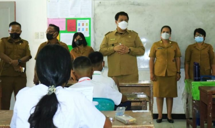 Samosir, POL | Bupati Samosir Vandiko T. Gultom memonitoring pelaksanaan Ujian Satuan Pendidikan (USP) yang merupakan ujian akhir tingkat Sekolah Dasar (SD) dan Sekolah Menengah Pertama (SMP), yang mulai digelar hari ini, Selasa (10/05/2022).