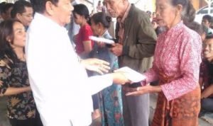 Samosir, POL | Meringankan beban derita masyarakat yang tertimpa musibah bencana, Bupati Samosir, Rapidin Simbolon yang didampingi Sekdakab, Jabiat Sagala dan staf menyerahkan bantuan sosial kepada 112 kepala keluarga yg tertimpa musibah.