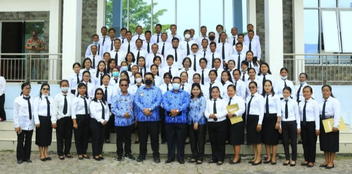 Samosir, POL | Dirangkai dengan Peringatan Hari Kesadaran Nasional, Bupati Samosir serahkan SK PPPK tenaga keguruan tahap I TA. 2021 di halaman Kantor Bupati Samosir, Senin (18/07/2022).