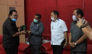 Samosir, POL | Bupati Samosir, Rapidin Simbolon menyambut baik kunjungan kerja Ketua DPRD Sumut, Drs. Baskami Ginting didampingi beberapa Anggota DPRD Sumut Dapil IX diantaranya Jubel Tambunan, SE, Pantur Banjarnahor, Victor Silaen, SE, MM, Irwan Simamora, SH dan Junius Taripar Hutabarat, Senin ( 8/6/2020), di kantor bupati setempat.