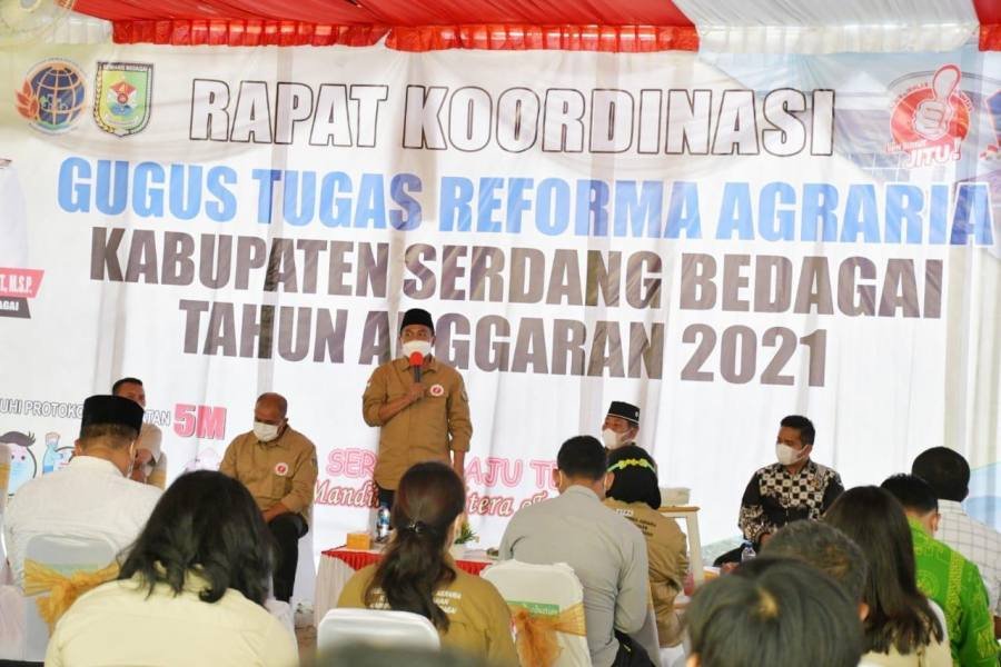 Sei Rampah, POL | Bupati Serdang Bedagai (Sergai) H. Darma Wijaya hadir dalam persiapan rapat koordinasi untuk memaparkan hasil inventarisasi yang dilakukan tim Gugus Tugas Reforma Agraria (GTRA) dan tim harian GTRA Kabupaten Sergi Tahun 2021, yang digelar oleh Badan Pertanahan Nasional (BPN) di Kantor BPN Sergai, Sei Rampah, Jumat (06/08/2021).